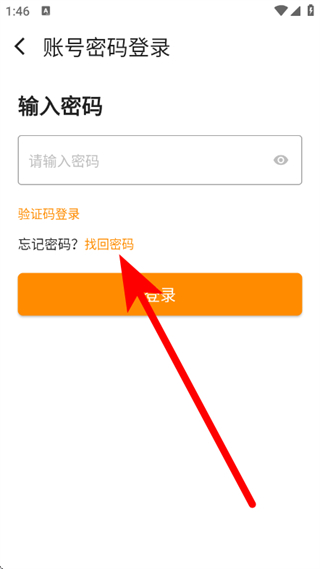 2、在账号密码登录页面,点击找回密码,进入忘记密码页面。