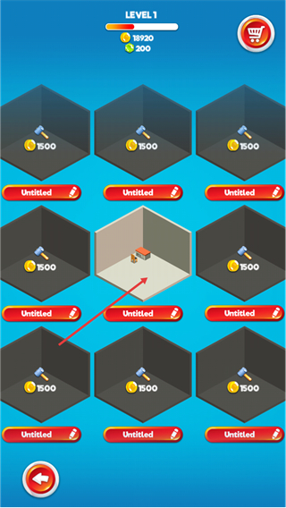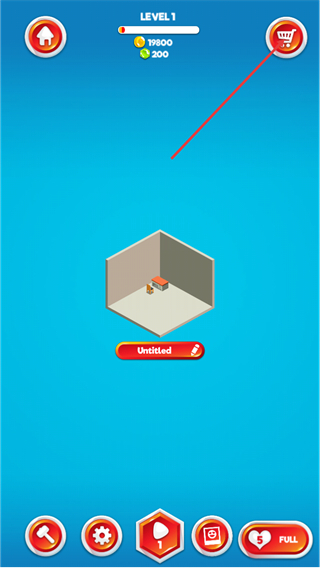 1、进入LEVEL1界面后,可点击右上角SHOP按钮进入商店,也能编辑Untitled名称,准备进行空间布置。