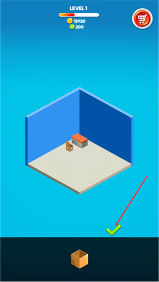 4、完成空间内家具布置后,点击界面中的绿色对勾,确认当前布置效果,推进游戏进程。