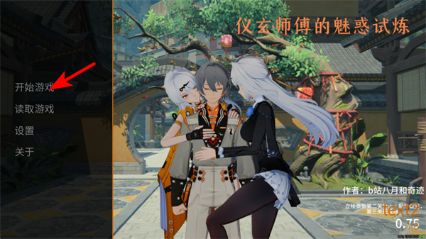 1、进入游戏主界面后,点击红色箭头指向的开始游戏按钮,开启本次剧情试炼的流程。