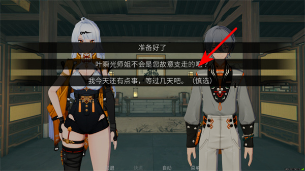 3、面对剧情选择时,跟随红色箭头提示,选择准备好了对应的选项,推进试炼剧情的发展。