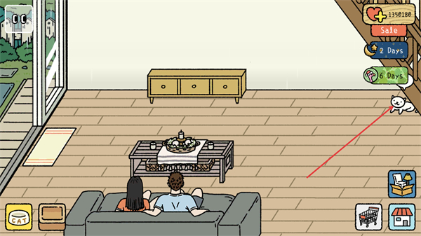 1、在当前场景中,点击右侧的猫咪可触发互动选项,同时留意界面上显示的2Days、6Days等标识内容。