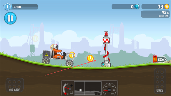2、驶过坡道时收集金币与道具如燃油,提升资源与续航。