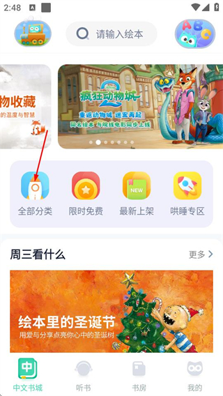 1、在中文书城页面,点击全部分类选项,可进入图书分类页面。