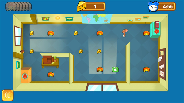 3、留意场景中随机刷新的道具,合理使用可短暂摆脱追击,为收集奶酪争取关键时间。
