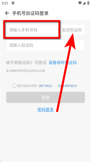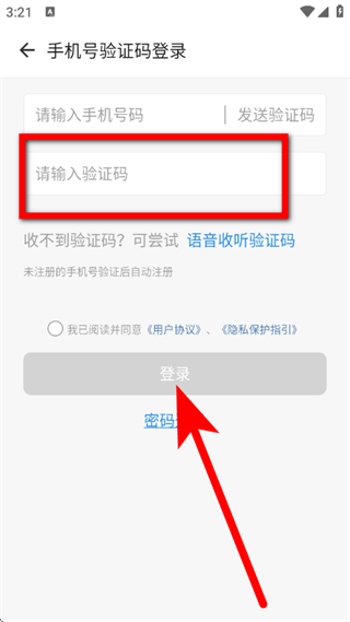 2、在我的页面,点击上方的登录注册,进入验证码登录页面。