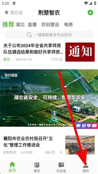 1、打开荆楚智农,点击底部我的,切换至个人页面。