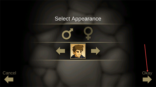1、在角色选择界面,通过箭头切换角色形象,选择性别标识对应的外观后,点击Okay确认即可完成角色外观设置。