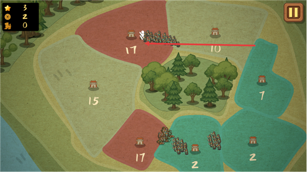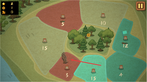 3、继续调动士兵,攻占数值为3的城池,积累兵力,同时获取地图中的资源道具。