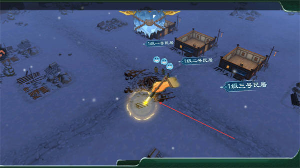 1、在场景中选择建造点,修建1级一号民居,1级二号民居,1级三号民居,搭建基础建筑。