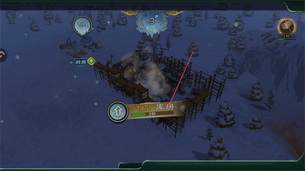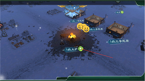 2、在建造点修建1级火炉,完成后获取资源道具,积累建设物资。