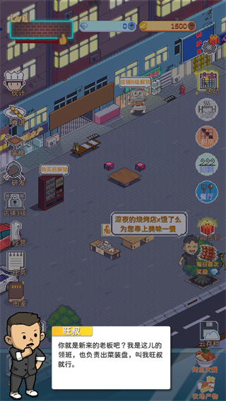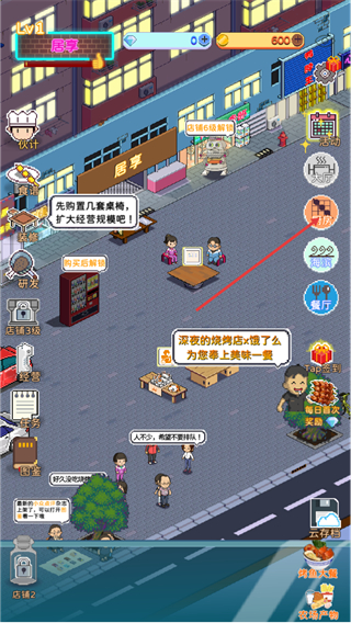 随着经营收益积累,可解锁更大的店面空间,增加餐桌数量与经营品类,从单一烤串店发展为综合性夜宵场所,逐步提升店铺知名度与市场竞争力。