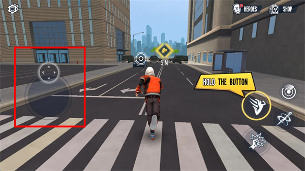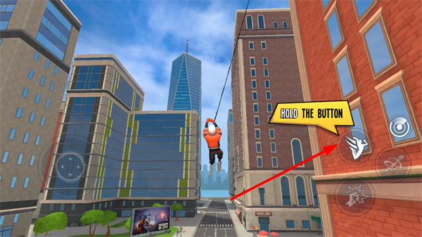 1、进入关卡后,长按对应按钮完成场景移动,通过绳索滑行穿越城市区域,抵达目标区域。