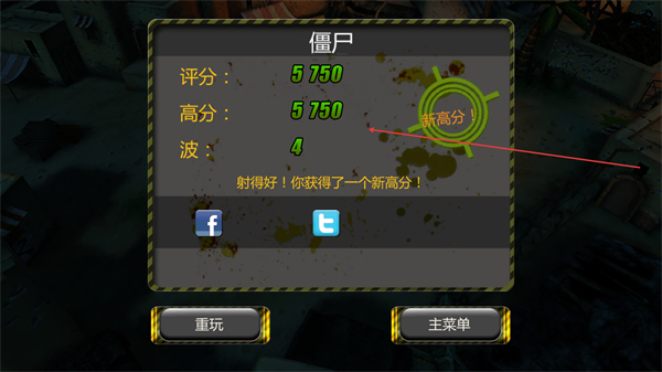 4、完成当前波次战斗,获得5750评分及新高分,可选择重玩或返回主菜单。