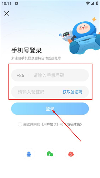 4、在手机号登录页面,填写手机号码、验证码,点击登录,完成登录。