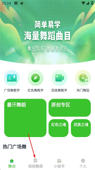 1、进入世界舞蹈汇后,点击底部的视频教程选项,可进入视频教程页面。