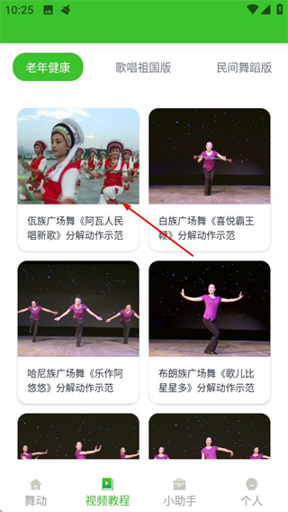 2、在视频教程页面,点击目标舞蹈视频,可进入该视频的播放页面。