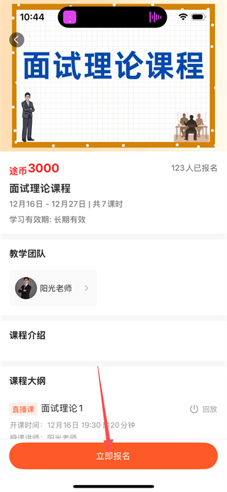 2、在课程列表页面,点击目标课程,可进入该课程的详情页面。