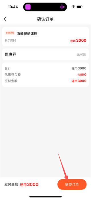 4、在确认订单页面,点击提交订单按钮,即可完成课程报名。