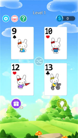严格遵循经典规则,每关提供四张扑克牌数字,通过四则运算组合,数字不能够重复使用且结果为24即可通关。