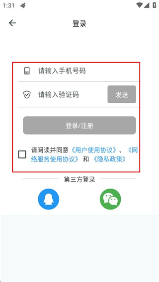 3、在登录页面,填写信息并勾选协议后,点击登录按钮即可完成登录。