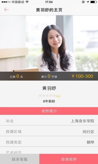 是音乐(钢琴、小提琴、吉他、声乐、古筝、架子鼓等)老师充分展示自我,家长公开透明地评价、甄选教师的双向平台