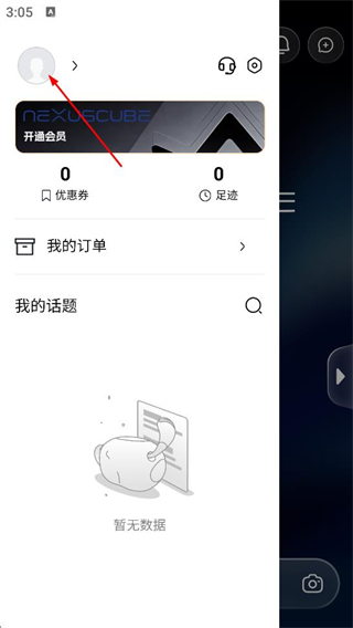 2、在侧边栏界面,点击头像区域的按钮,进入登录选择页面。