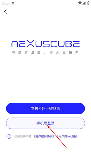 3、在登录选择页面,点击手机号登录,进入手机号登录界面。