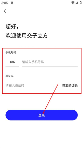4、在登录界面,填写手机号码和验证码后,点击登录,完成登录。