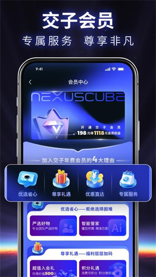 交子立方是全域购物的综合服务平台,核心为用户提供一站式购物体验,支持开通会员解锁专属特权,以会员价选购海量优质商品,商品覆盖日用、时尚、数码等全品类且经过精细化分类,搭配智能检索与个性化推荐功能,让用户快速锁定所需,叠加品质把控与多元优惠,彻底简化购物流程,兼顾实惠与便捷。