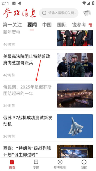 1、进入参考消息后,点击目标新闻内容,可进入该新闻的详情页面。