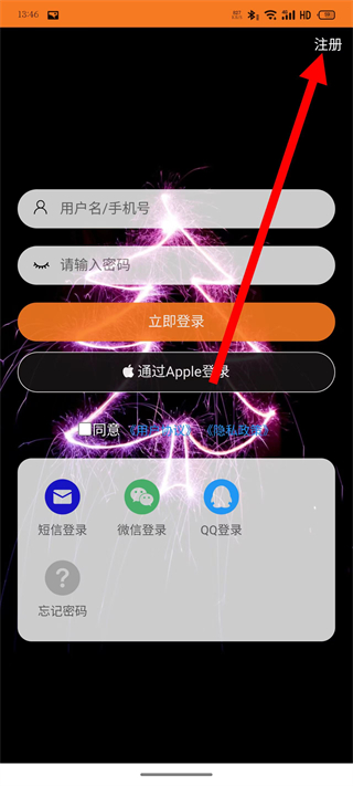 1、打开指间宝,点击右上角的注册,弹出操作选项弹窗。