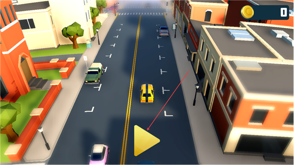 1、跟随黄色箭头指引,操控黄色车辆在街道行驶,避开其他车辆。