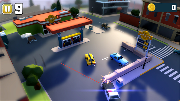 2、驾驶车辆进入加油站区域,躲避警车的拦截,继续推进。