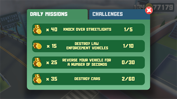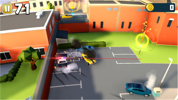 3、在停车场区域摆脱警车追击,碰撞障碍阻碍追兵,提升得分。