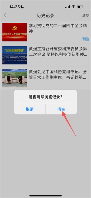 3、在历史记录页面,点击右上角的清空按钮,会弹出确认清除的提示框。