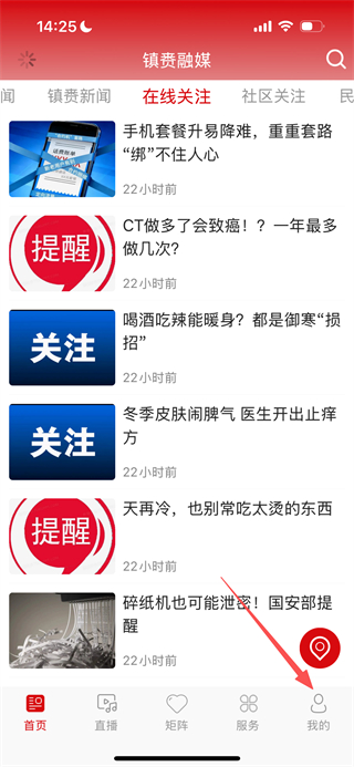 1、进入镇赉融媒后,点击底部的我的选项,可进入个人中心页面。