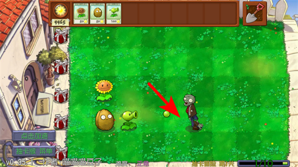 4、战斗过程中,跟随红色箭头提示,种植攻击类植物如豌豆射手和防御类植物如土豆地雷,阻挡并消灭僵尸,确保通关。
