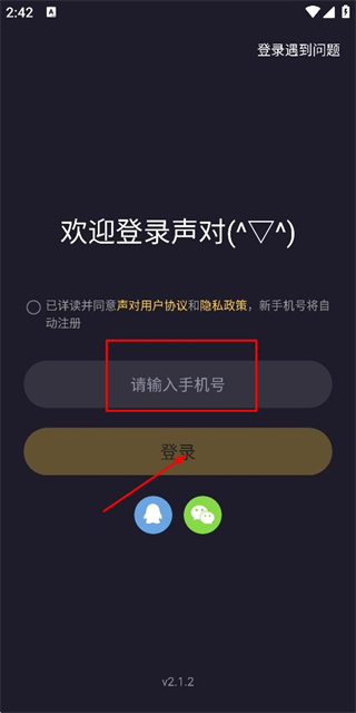 1、在使用协议隐私政策弹窗中点击同意按钮,进入登录页面。