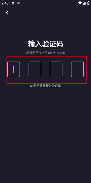3、在输入短信验证码页面填写收到的验证码,完成账号的登录操作。
