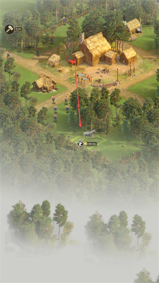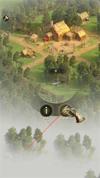 3、确认捕猎指令后,村民将前往目标单位处,完成资源获取的操作流程。