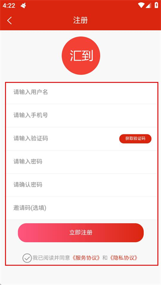 4、在注册页面,填写信息并勾选协议后,点击立即注册按钮即可完成账号注册。