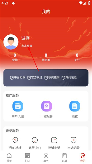 2、在个人中心页面,点击点击登录区域,可进入登录页面。