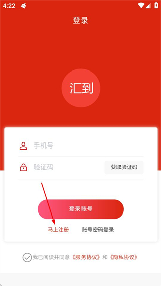 3、在登录页面,点击马上注册选项,可进入注册页面。
