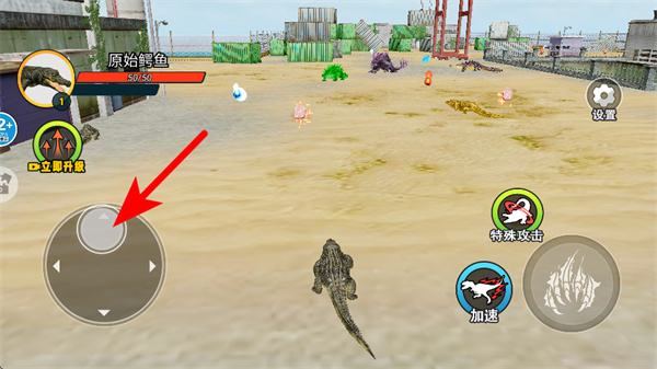 1、进入游戏场景后,通过左侧方向键操控鳄鱼角色移动,朝着场景中的目标区域如其他生物或道具处前进,这是基础操作的关键步骤。