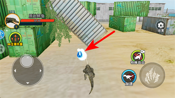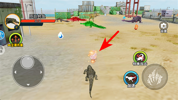 3、紧跟红色箭头指引,利用加速按钮快速移动角色,能躲避敌方生物的攻击,也能更快靠近目标道具或目标生物,提升行动效率。