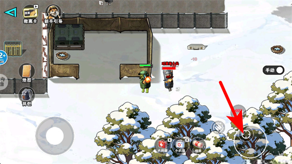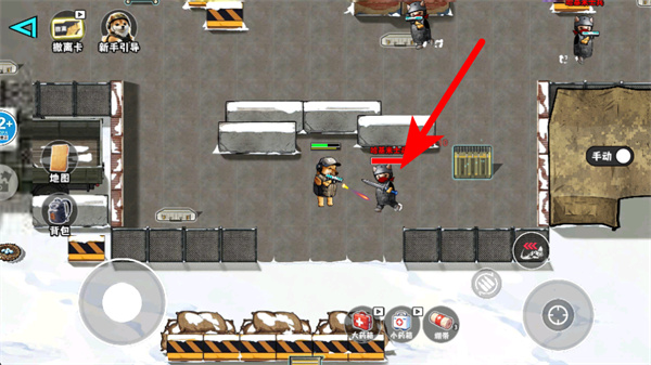 3、紧跟红色箭头指引,点击攻击按钮锁定敌方单位,发起进攻清理敌人,同时利用场景中的掩体如石块、树木躲避敌方攻击。
