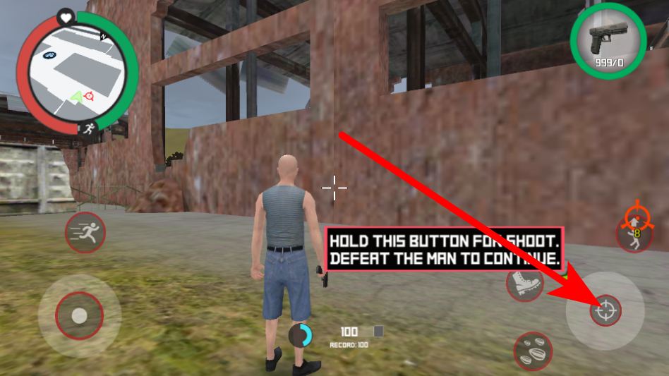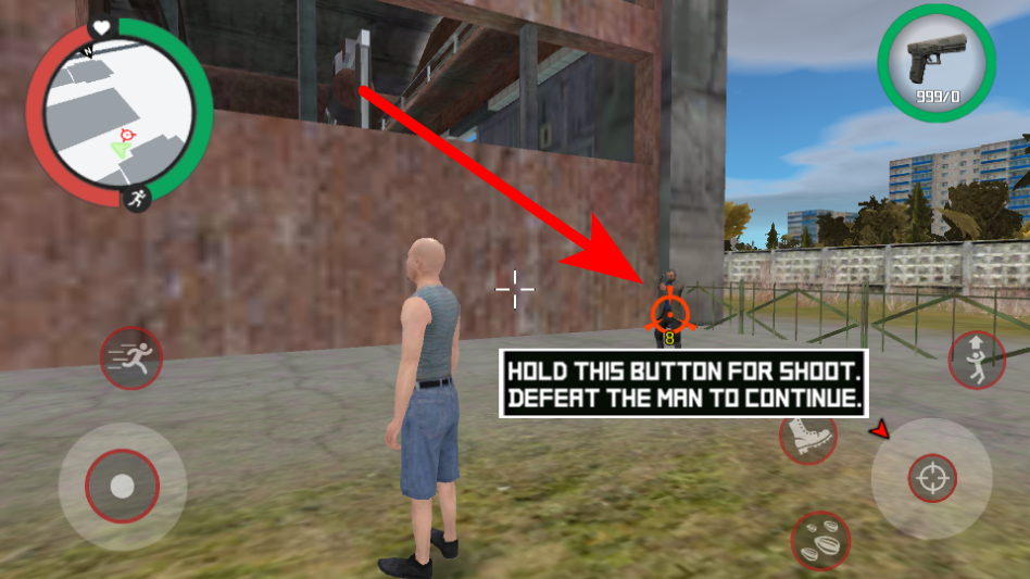 1、长按右侧的射击按钮SHOOT,攻击目标敌人,击败后推进流程。