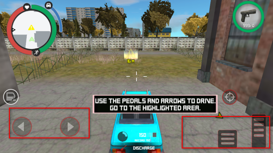 4、进入车辆后,通过踏板与方向按钮操控车辆行驶,前往高亮区域完成驾驶引导。