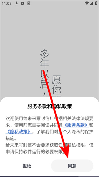 1、打开给未来写封信,在弹出的弹窗中点击同意,进入主界面。